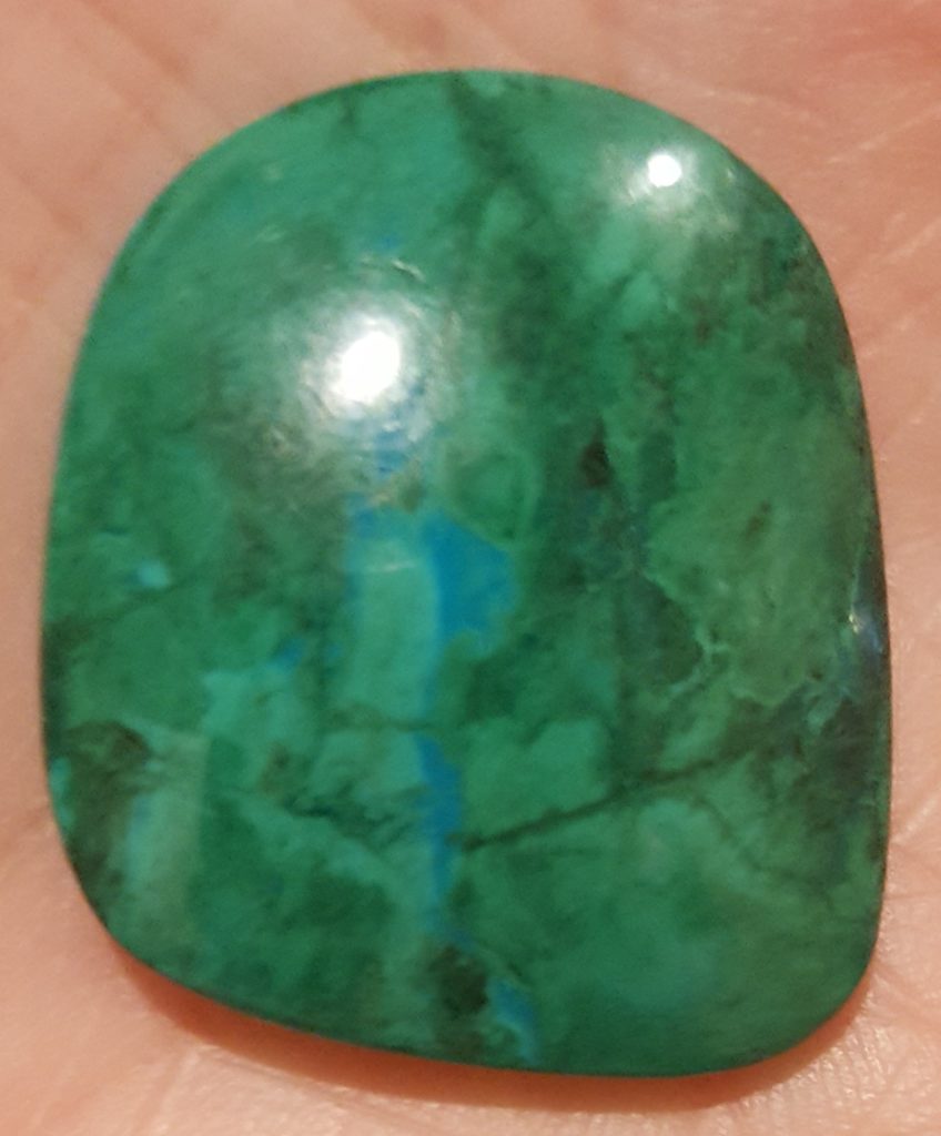 1883. CHRYSOCOLLA. Nice mix of greens and blues. 58.72 cts. 29.3 x 26.3 mm $60. 1881. CHRYSOCOLLA. Peru. Meas. 40.4 x 25.8 mm. 70.82 cts. $53.